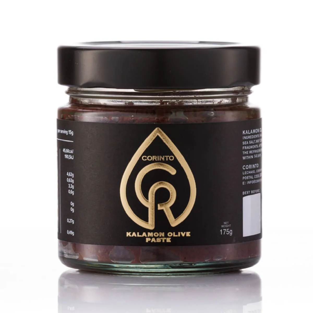 Kalamon olivenpasta er fri for tilsetningsstoffer og konserveringsmidler, og er ideell til smørbrød og er en utmerket forrett med tvebakker eller grillet brød. Den gir også en unik smak til pasta- eller pizzaoppskrifter, og skaper en rik, fyldig smak som henger igjen lenge etter den siste biten.