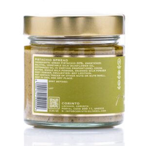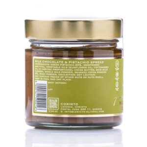 Oppdag CORINTOs deilige pistasjkrem med sukkerfri melkesjokolade. Den høye andelen (20 %) av gresk pistasj gir den en sterk aroma og intens farge, kombinert med den deilige sukkerfrie melkesjokoladen for en perfekt smaksopplevelse.
